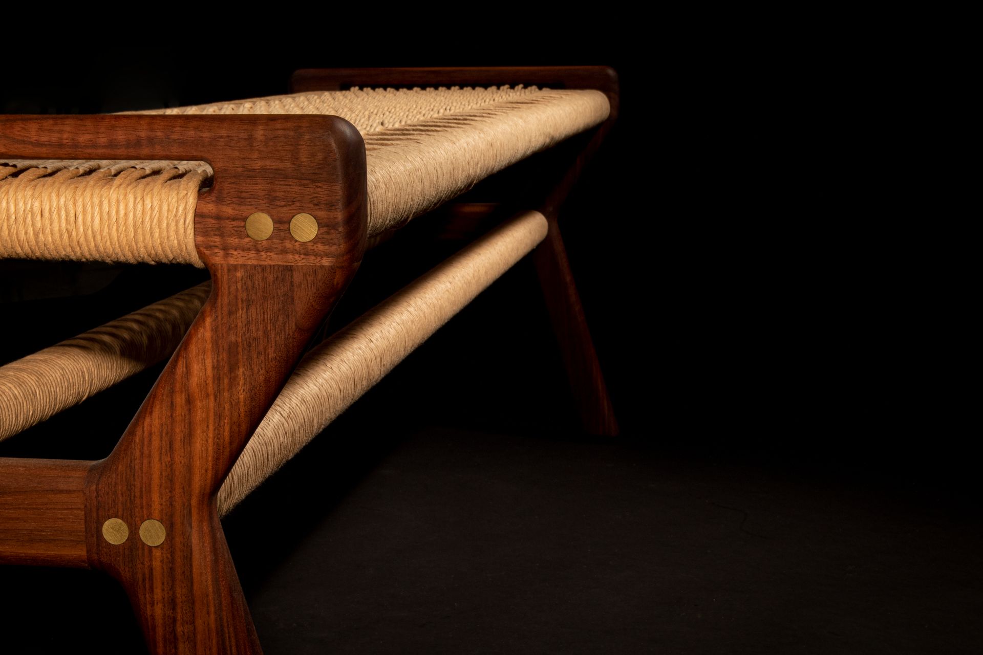 This bench reflects my willingness to learn skills that stretch outside of wood manipulation, by introducing danish cord weaving techniques that I had to study before designing and making this piece.