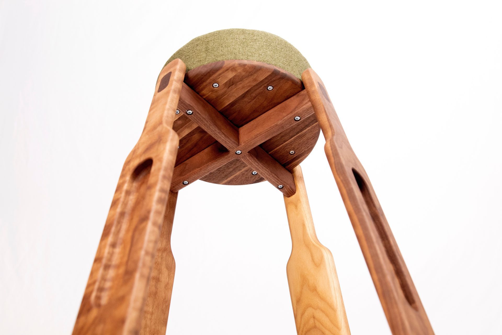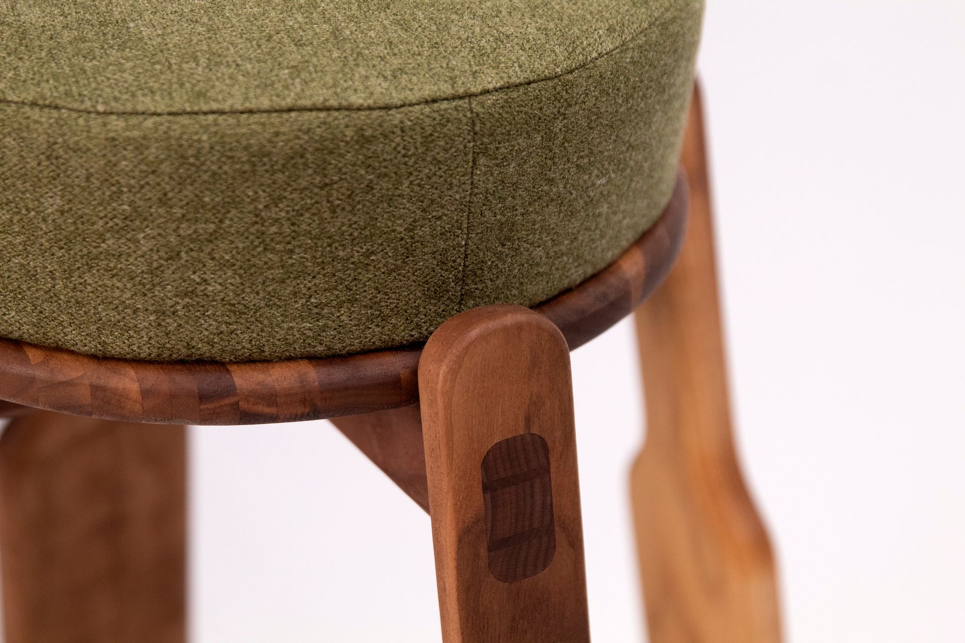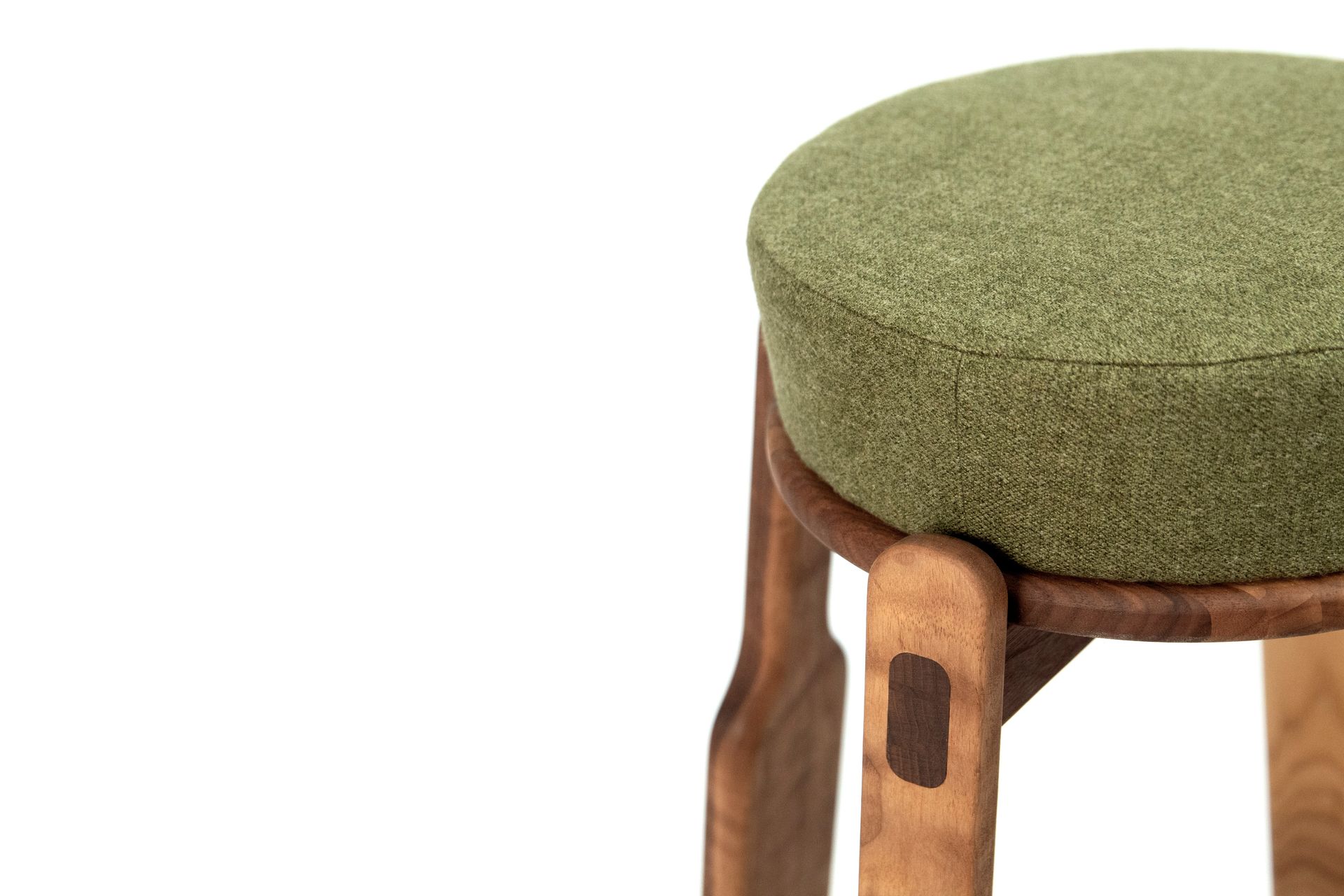 The Poddel Stool is my honest approach to the classic round-top wooden counter stool. The crafted structure is proudly highlighted by its visible joinery and cushion topped with a simple seamed heather-woven upholstery. Even though the light-weight Poddel Stool has a small footprint, its voice is loud and sure to elicit curiosity.