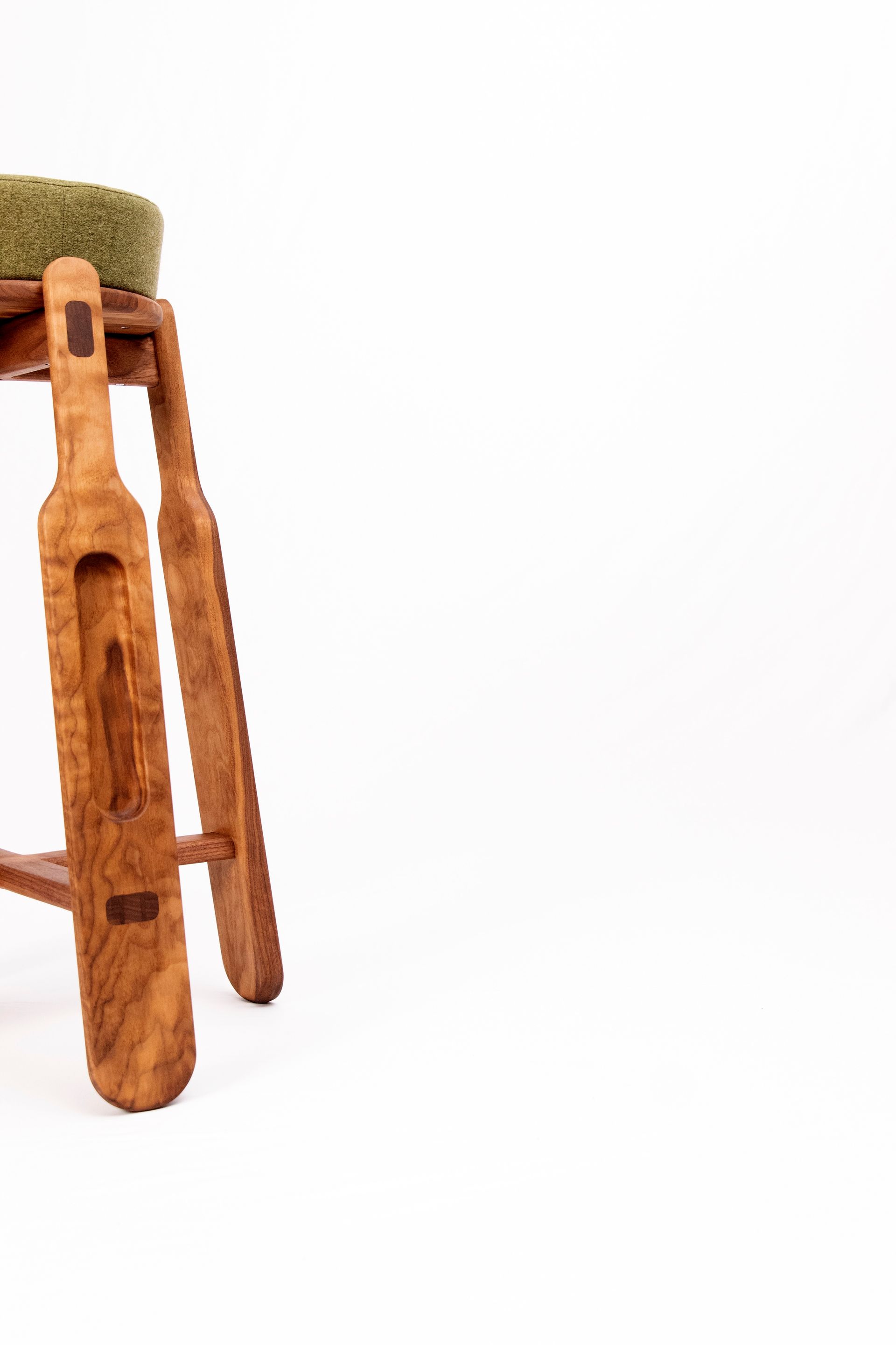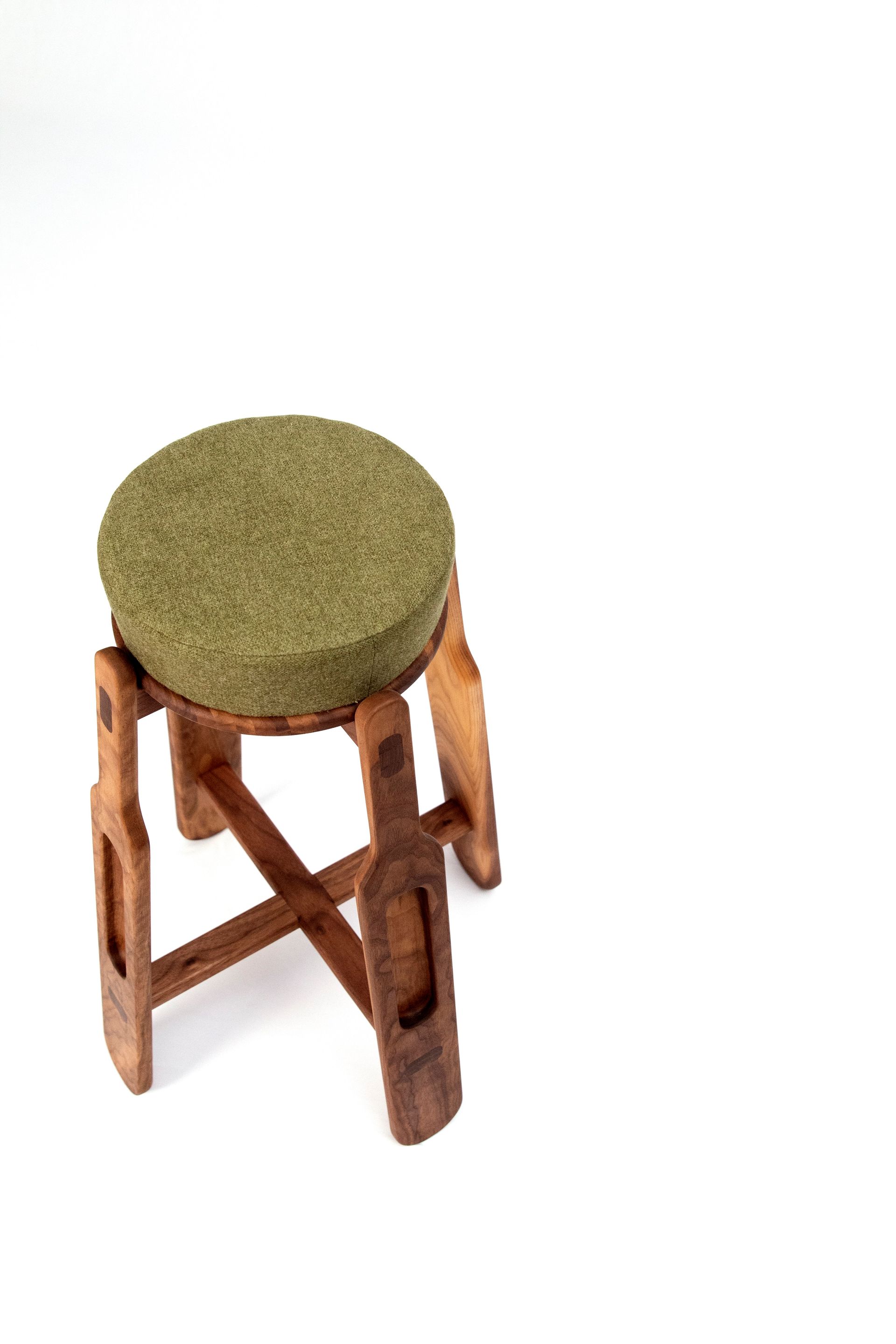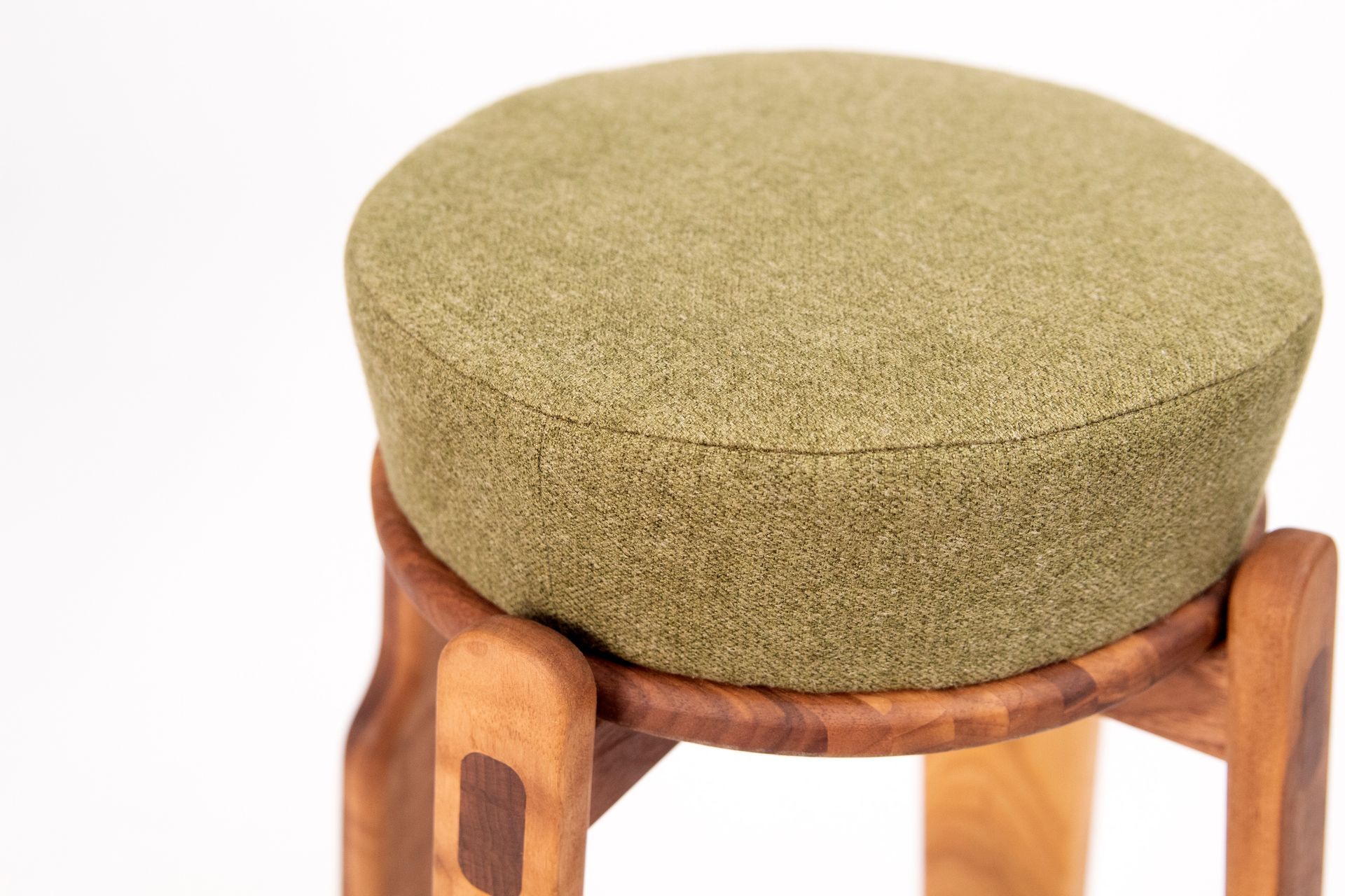 The Poddel Stool is my honest approach to the classic round-top wooden counter stool. The crafted structure is proudly highlighted by its visible joinery and cushion topped with a simple seamed heather-woven upholstery. Even though the light-weight Poddel Stool has a small footprint, its voice is loud and sure to elicit curiosity.
