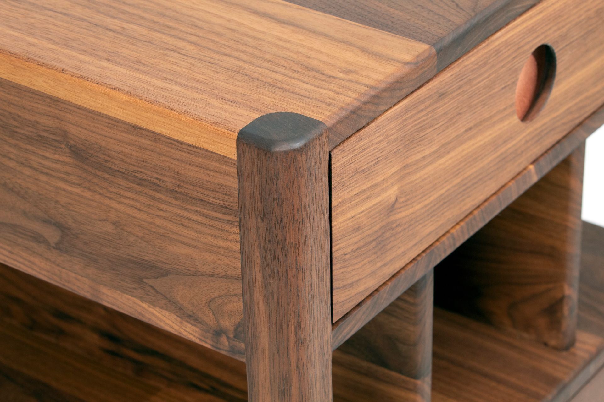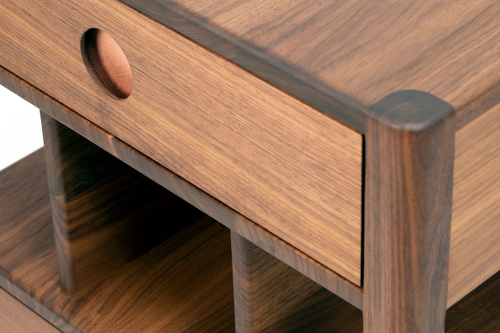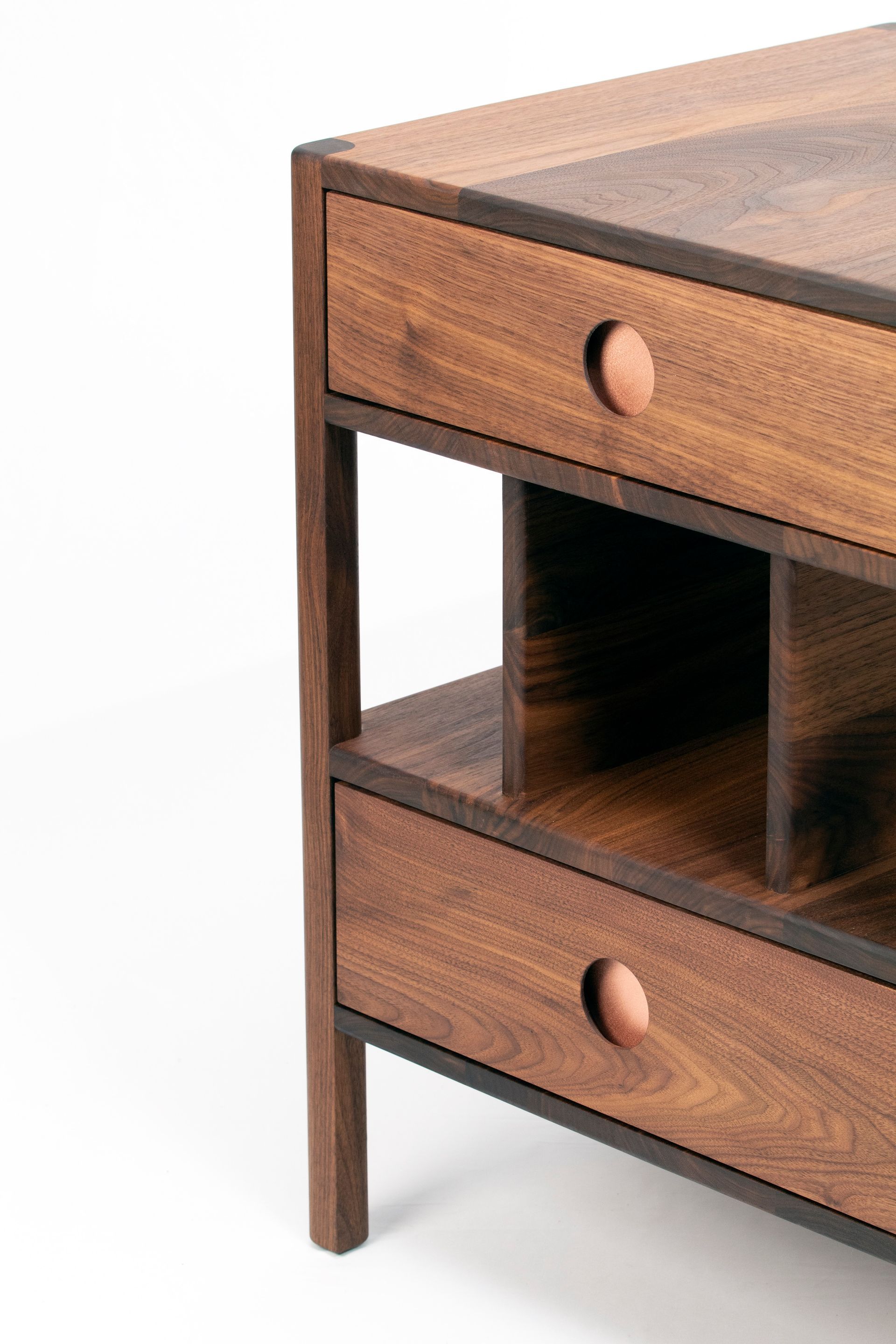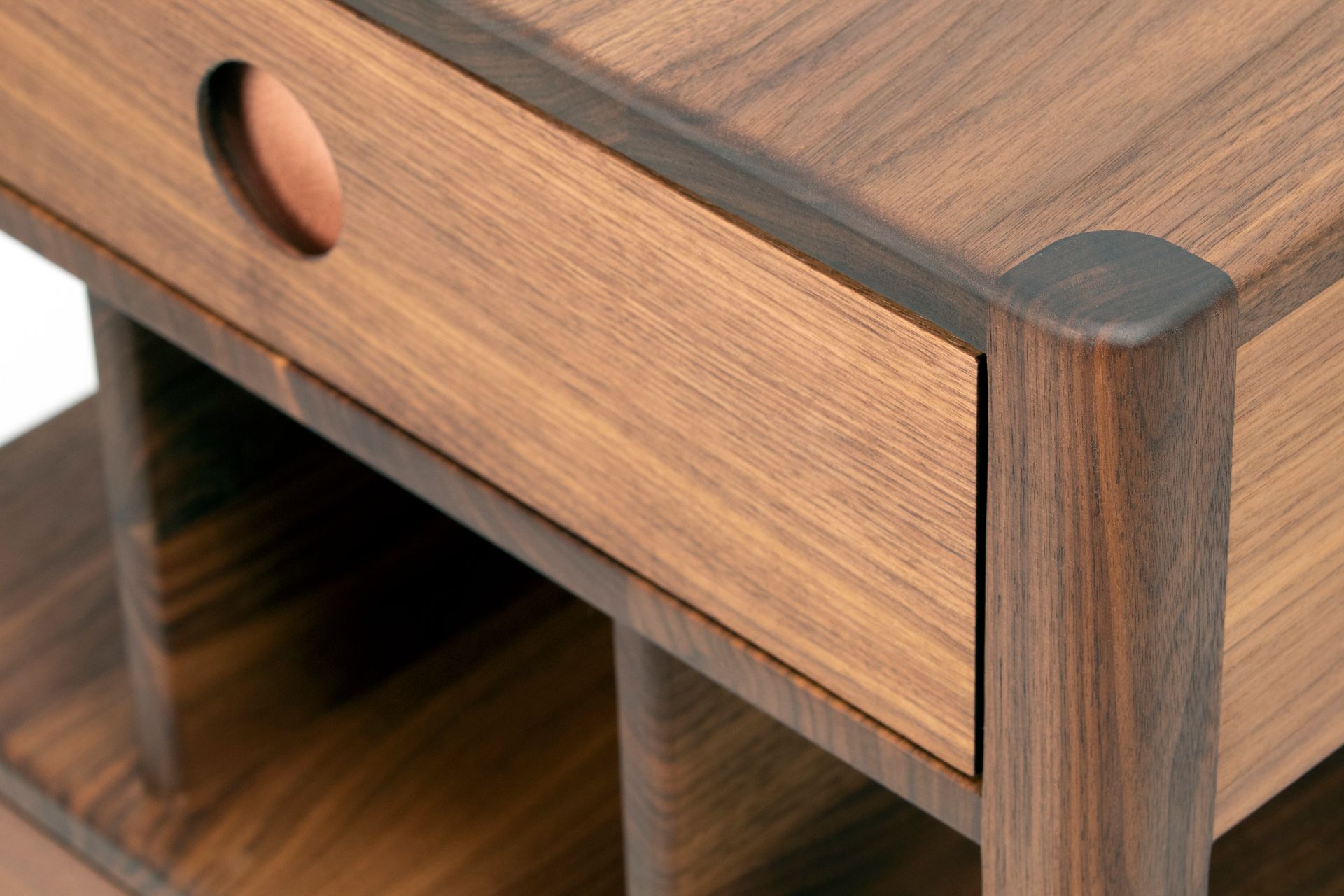 Every design decision is a reflection of purpose including the copper plate, which serves as a signifier for the drawer pull and compliments the warm tones of the black walnut.