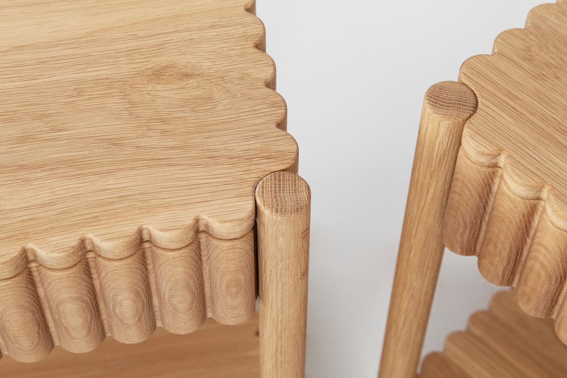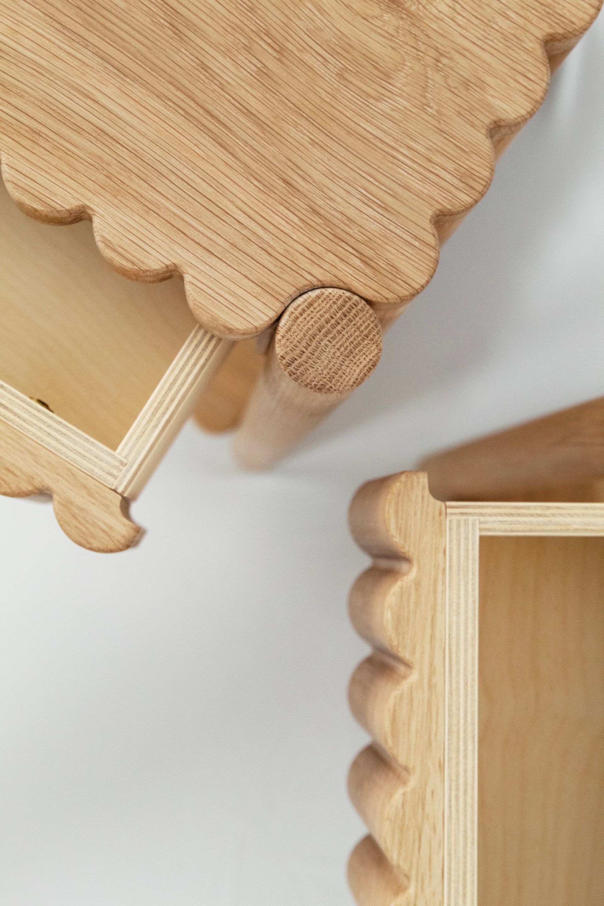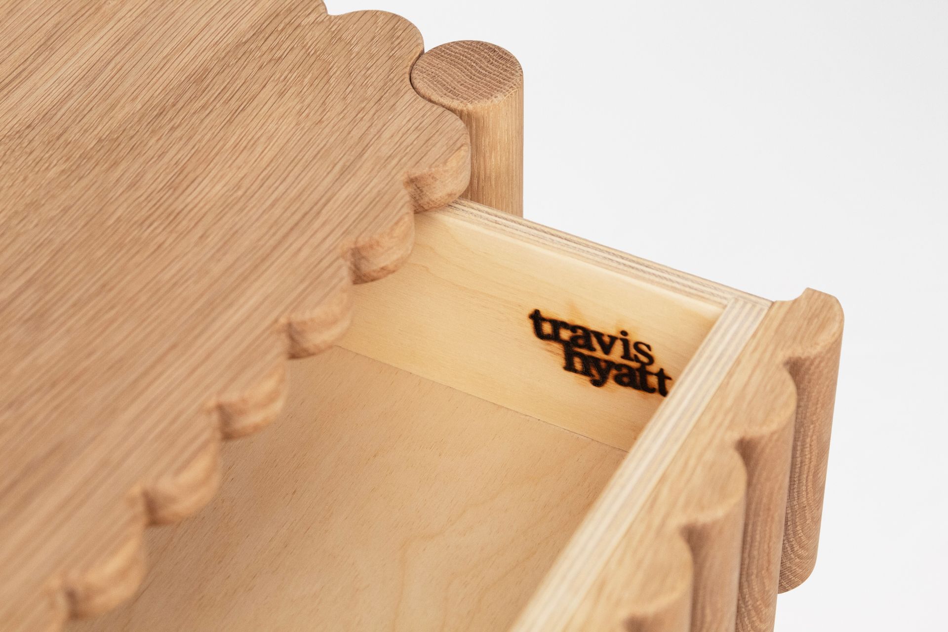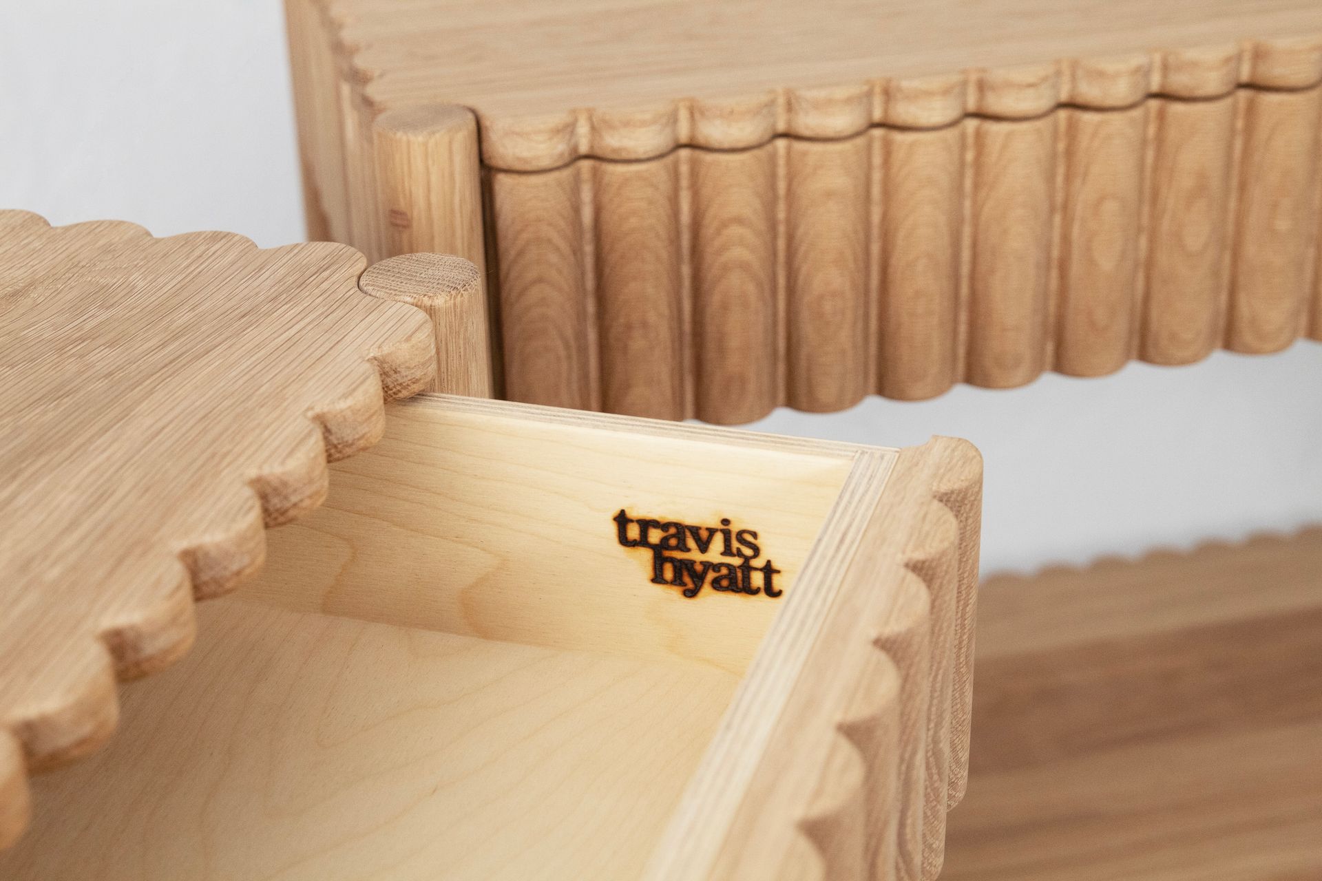 The Saltine Nightstands were commissioned for a client who required a set of bedside tables that have a “light, airy, & leggy” composition. The Design started with long dowel legs. These were the guiding feature for the remainder of the design, whereas the cylinder shape was mimicked with the geometric repetition across the front and sides. Their silhouettes then projected to the surface edges which defined the final form.