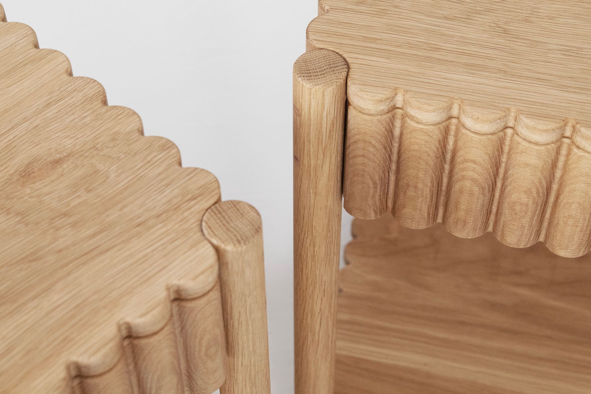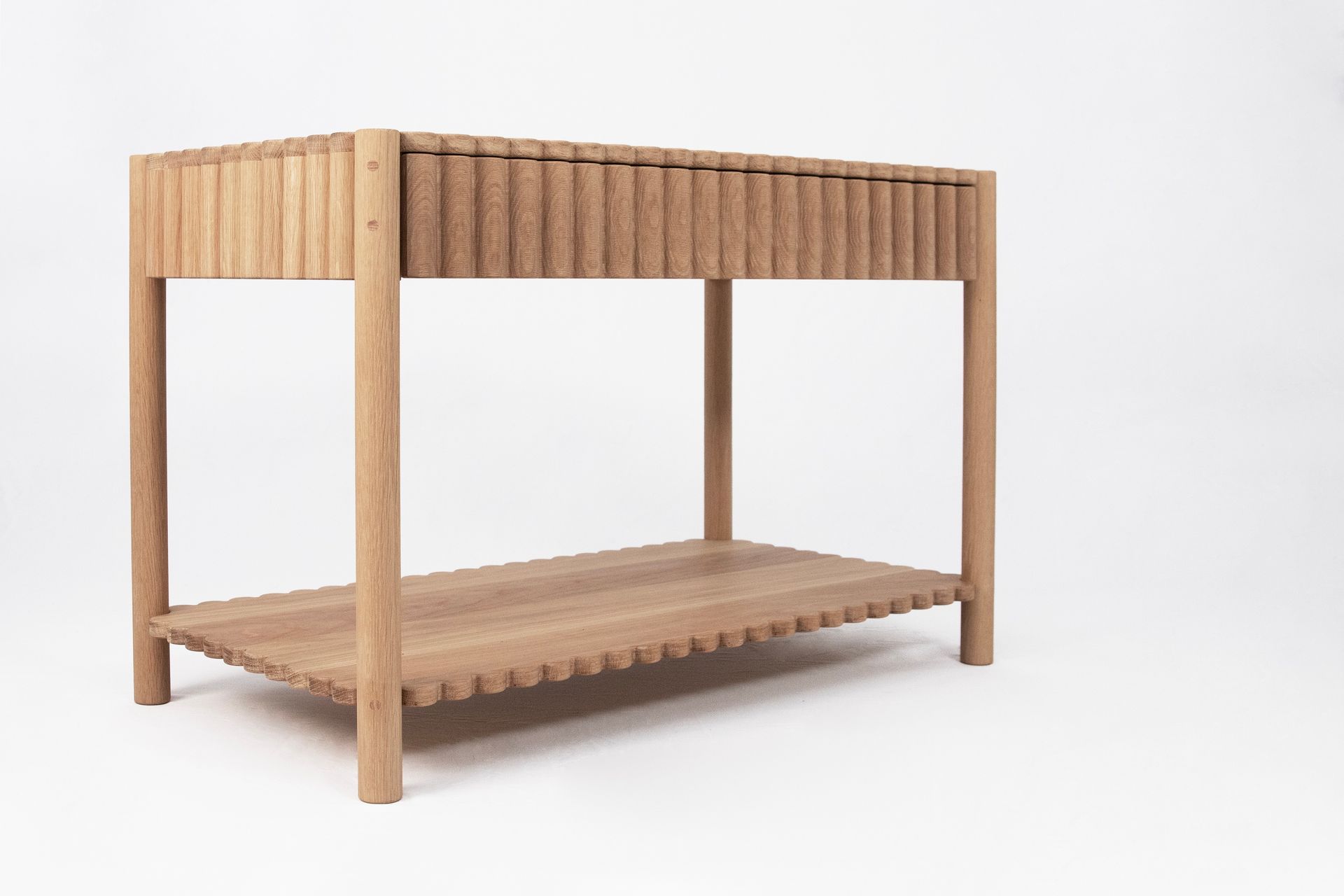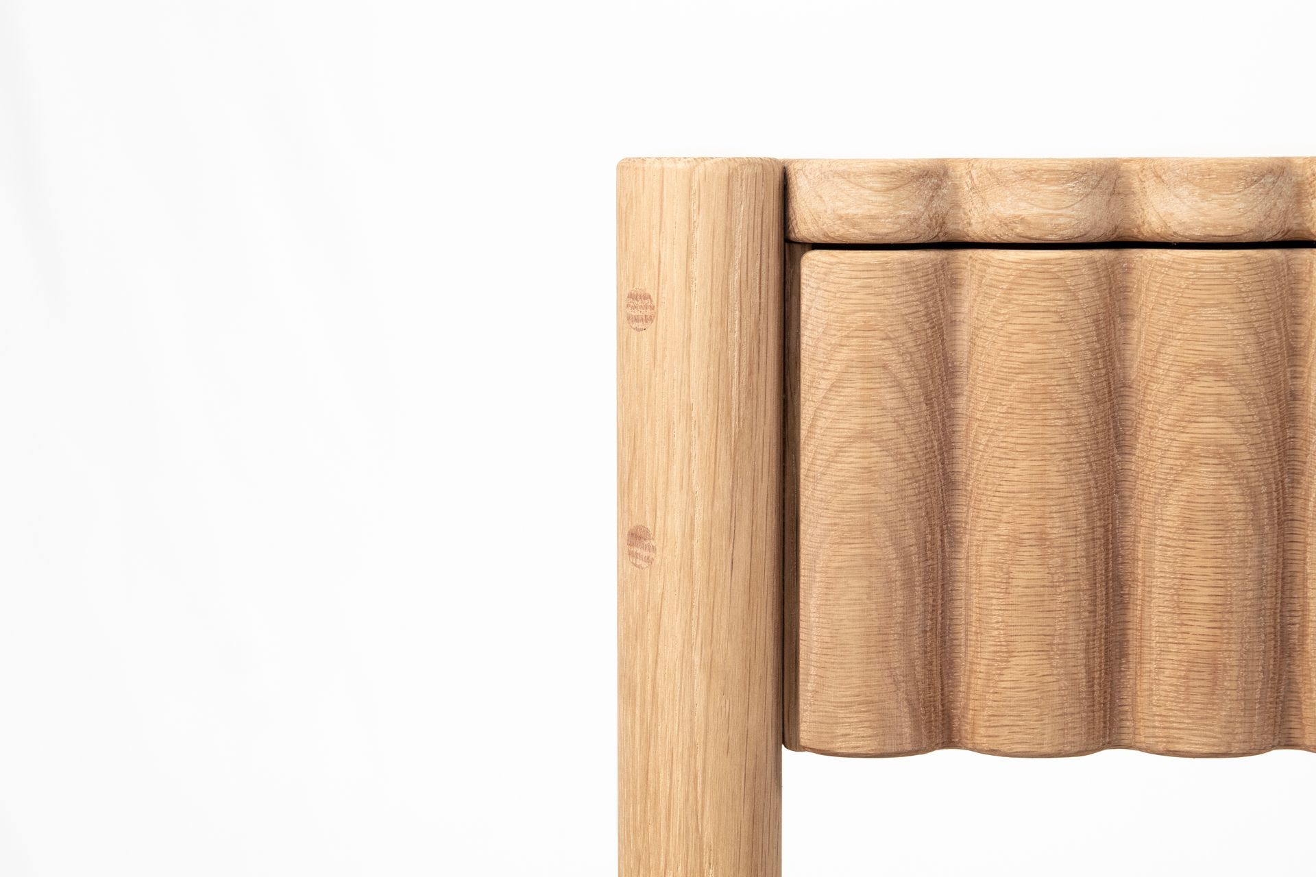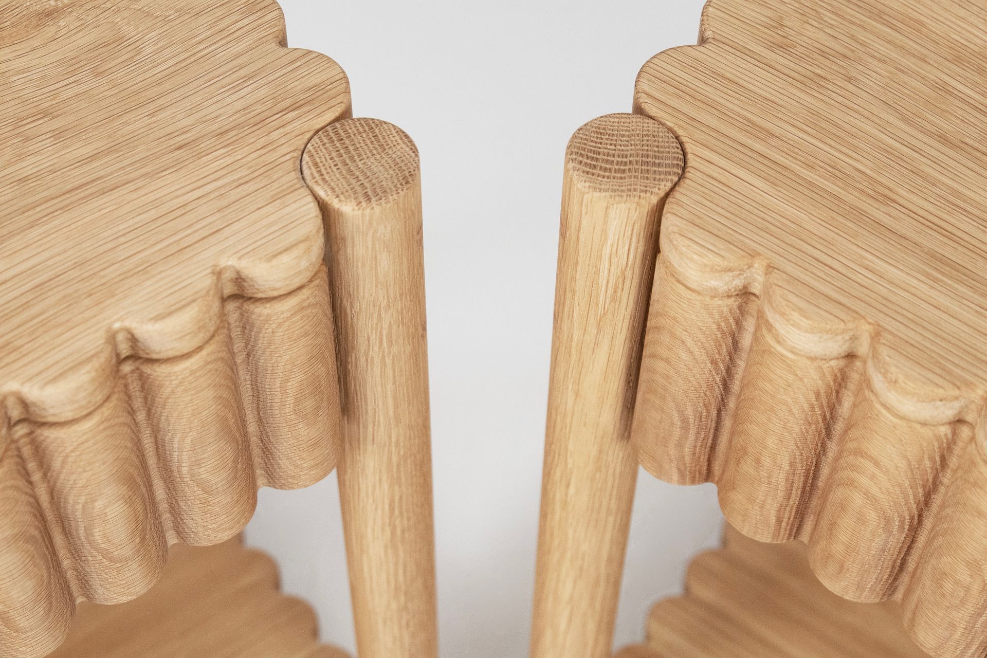 The Saltine Nightstands were commissioned for a client who required a set of bedside tables that have a “light, airy, & leggy” composition. The Design started with long dowel legs. These were the guiding feature for the remainder of the design, whereas the cylinder shape was mimicked with the geometric repetition across the front and sides. Their silhouettes then projected to the surface edges which defined the final form.