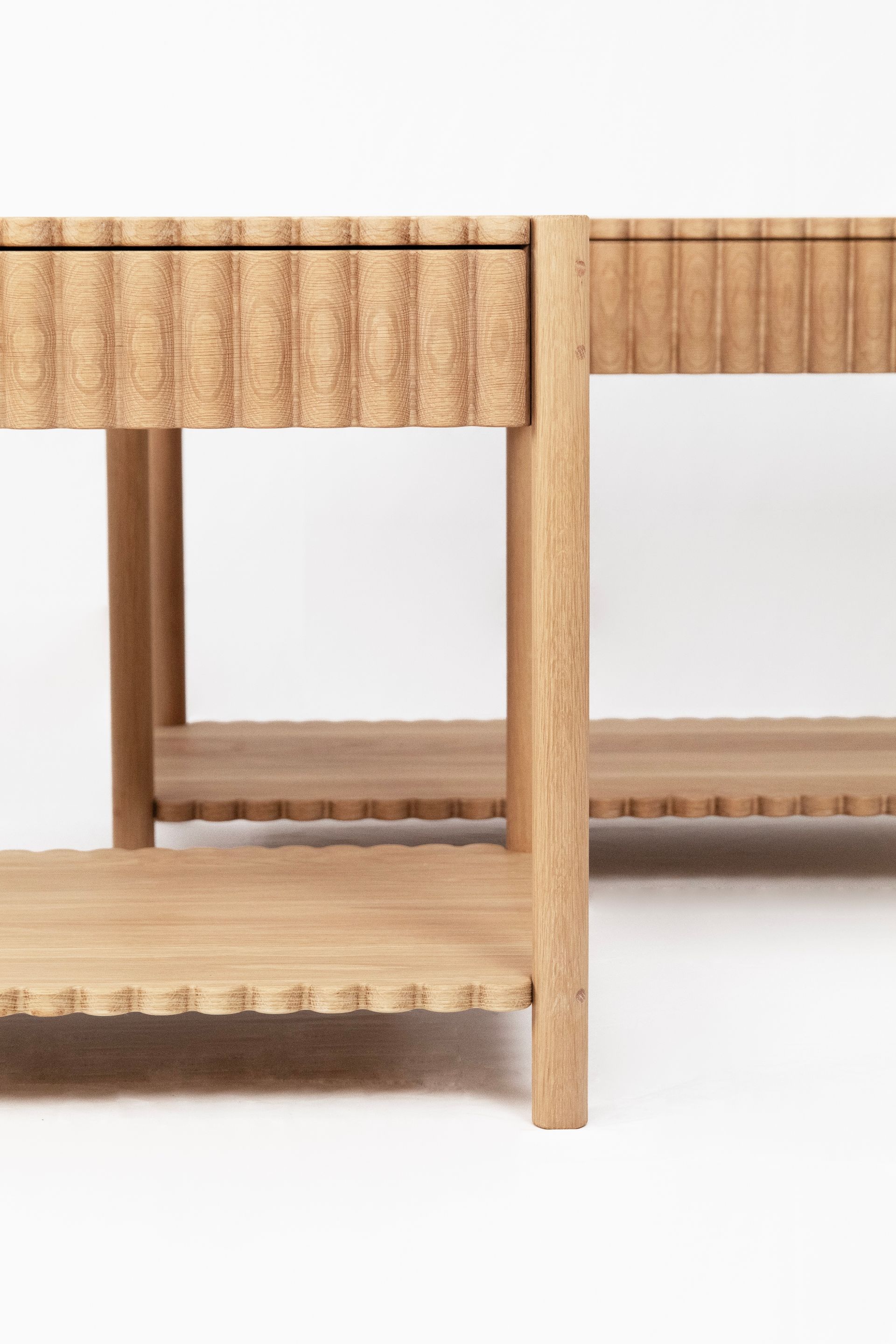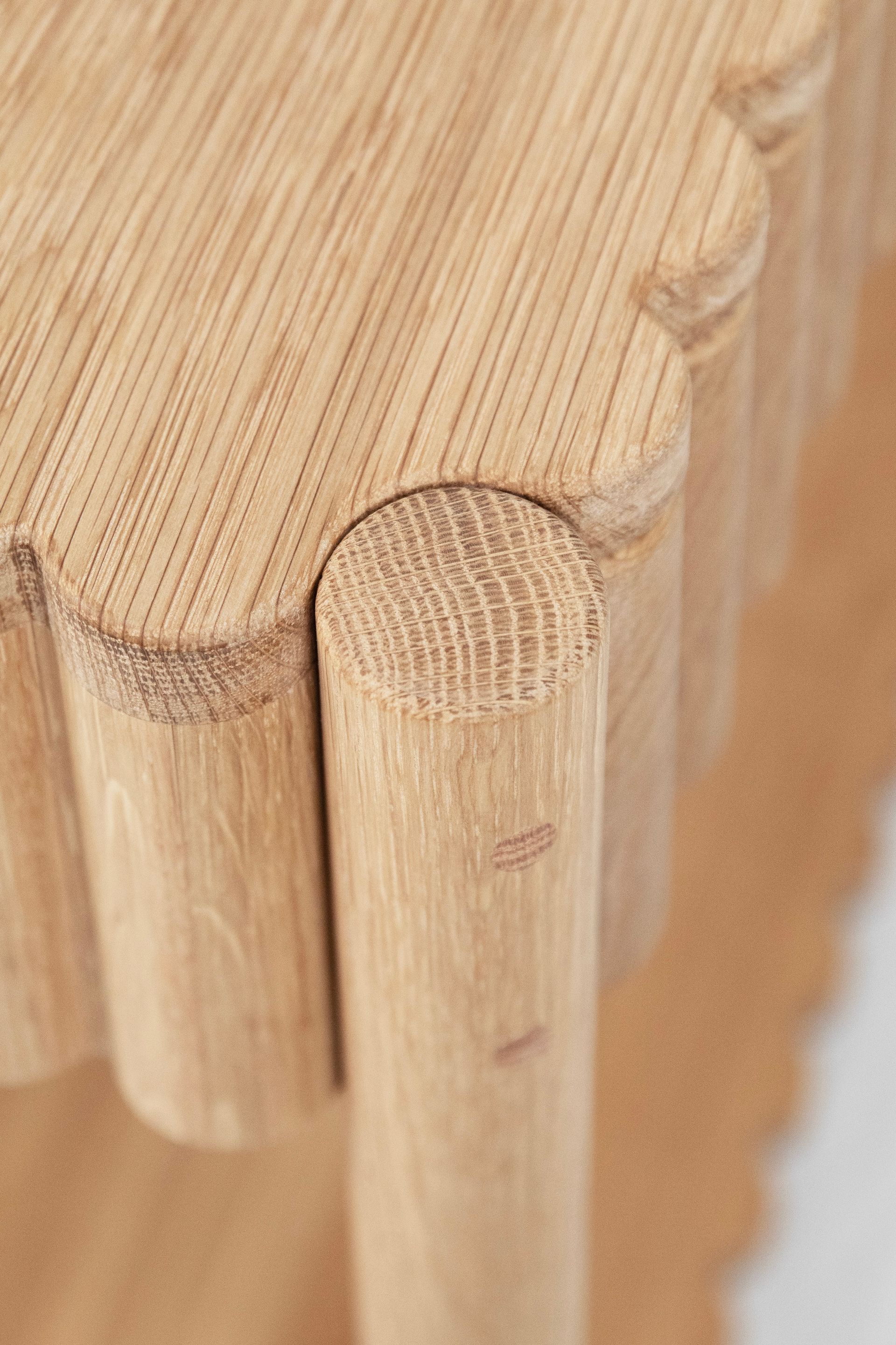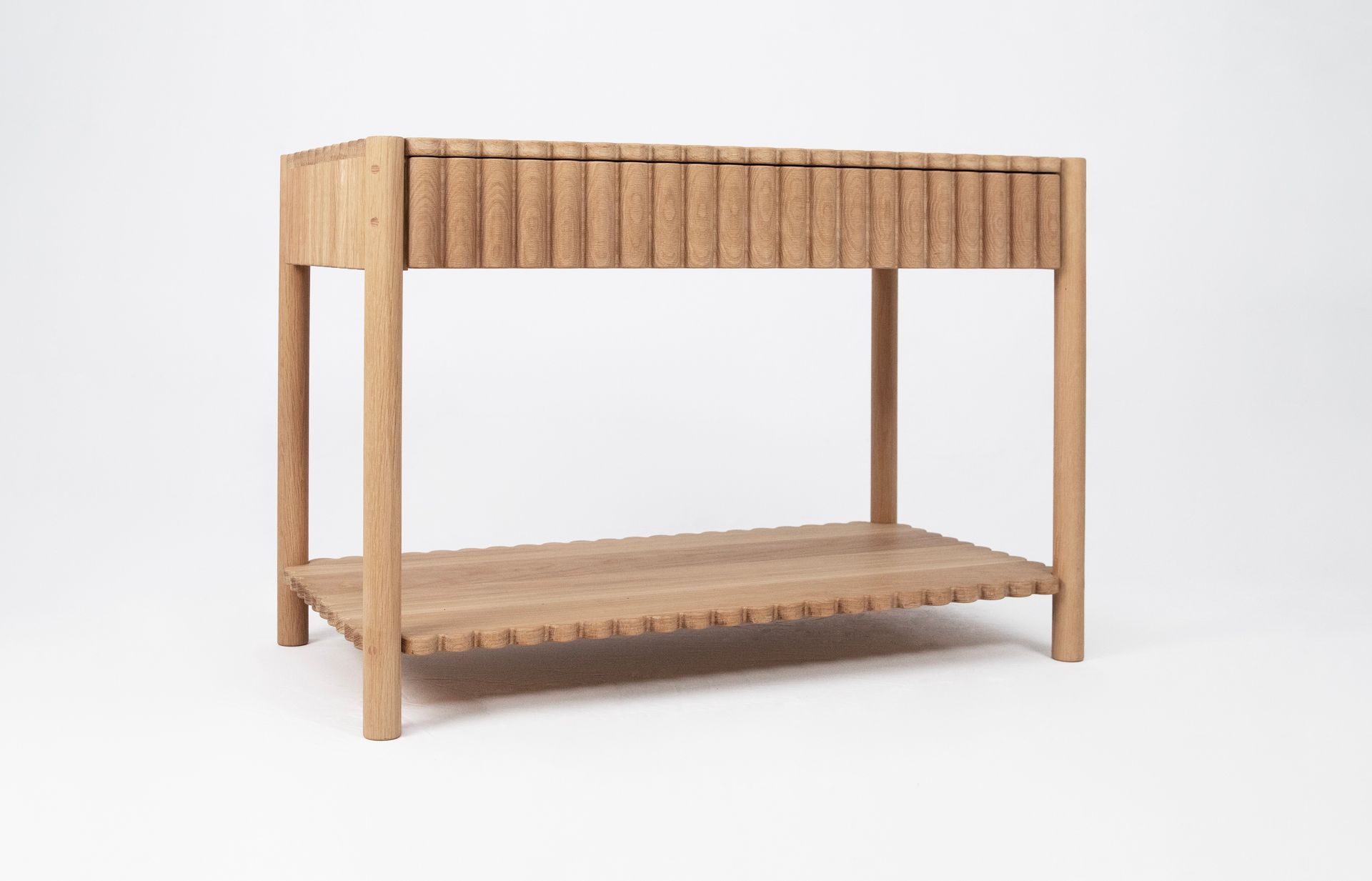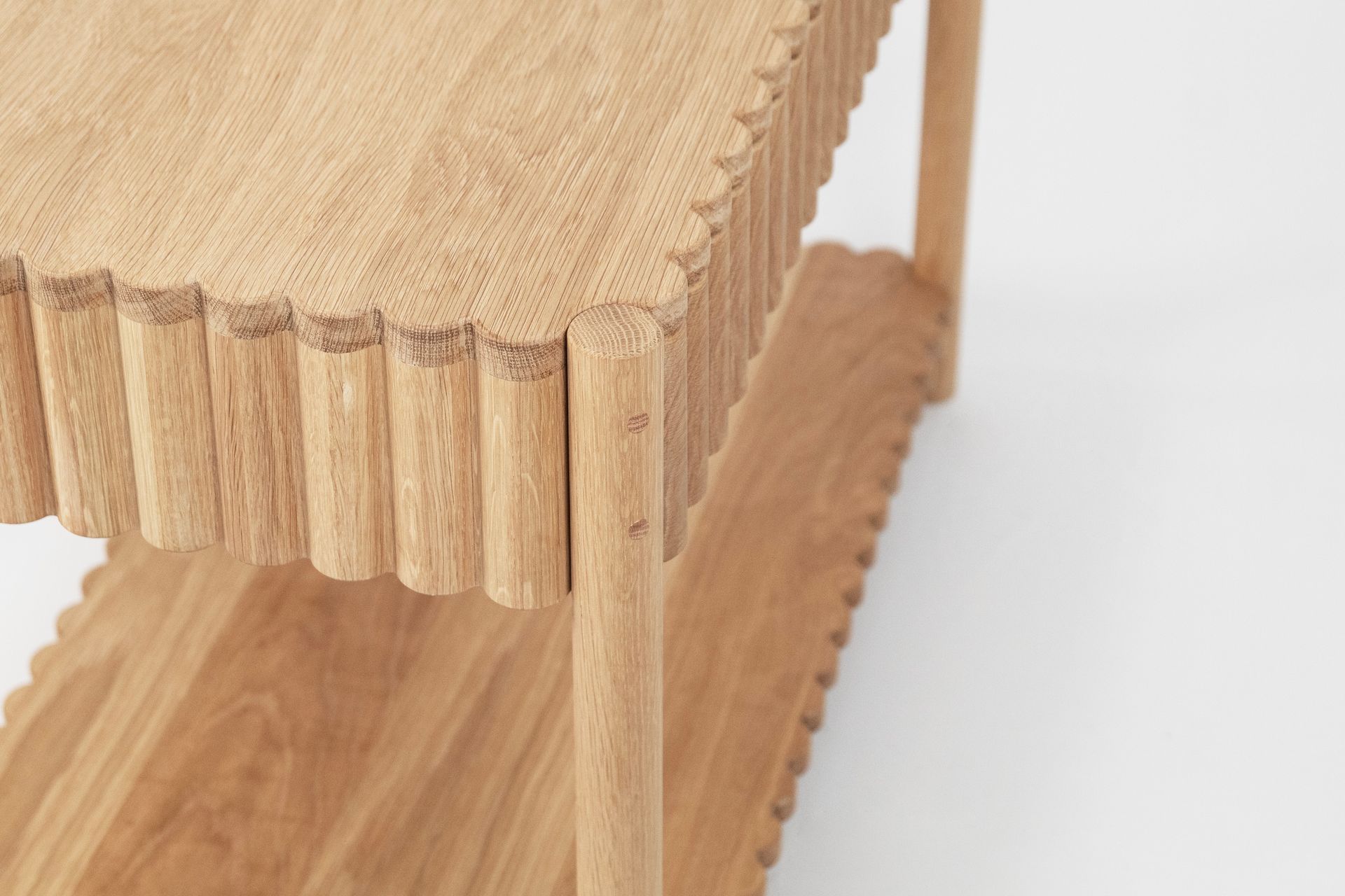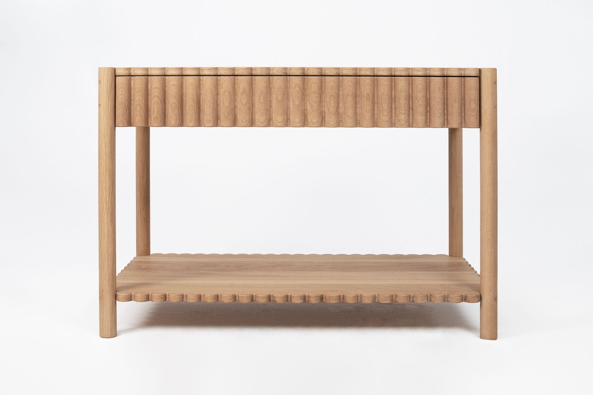 The Saltine Nightstands were commissioned for a client who required a set of bedside tables that have a “light, airy, & leggy” composition. The Design started with long dowel legs. These were the guiding feature for the remainder of the design, whereas the cylinder shape was mimicked with the geometric repetition across the front and sides. Their silhouettes then projected to the surface edges which defined the final form.
