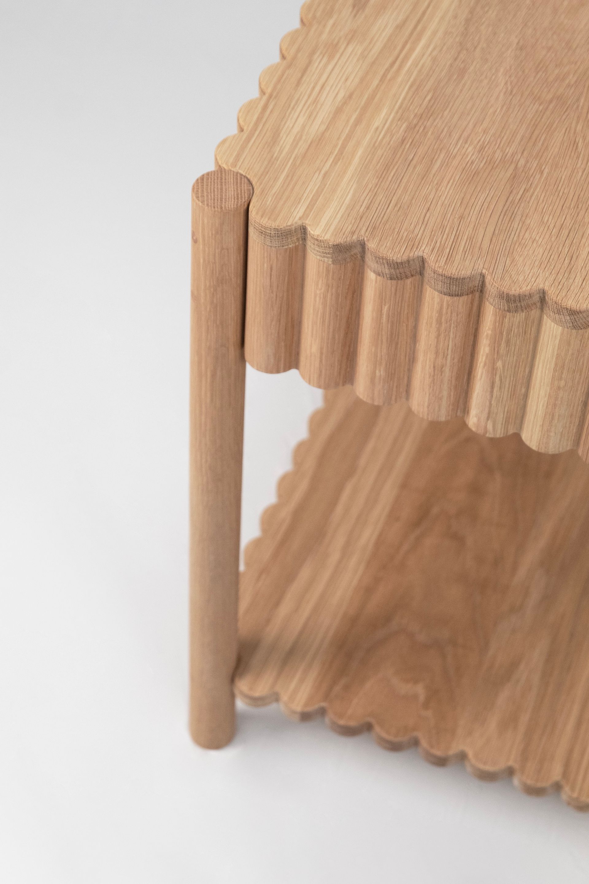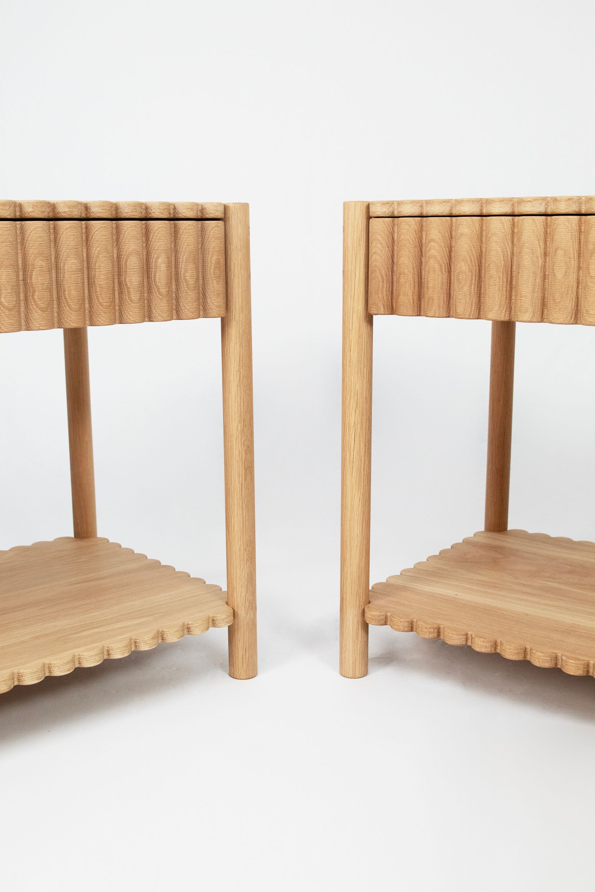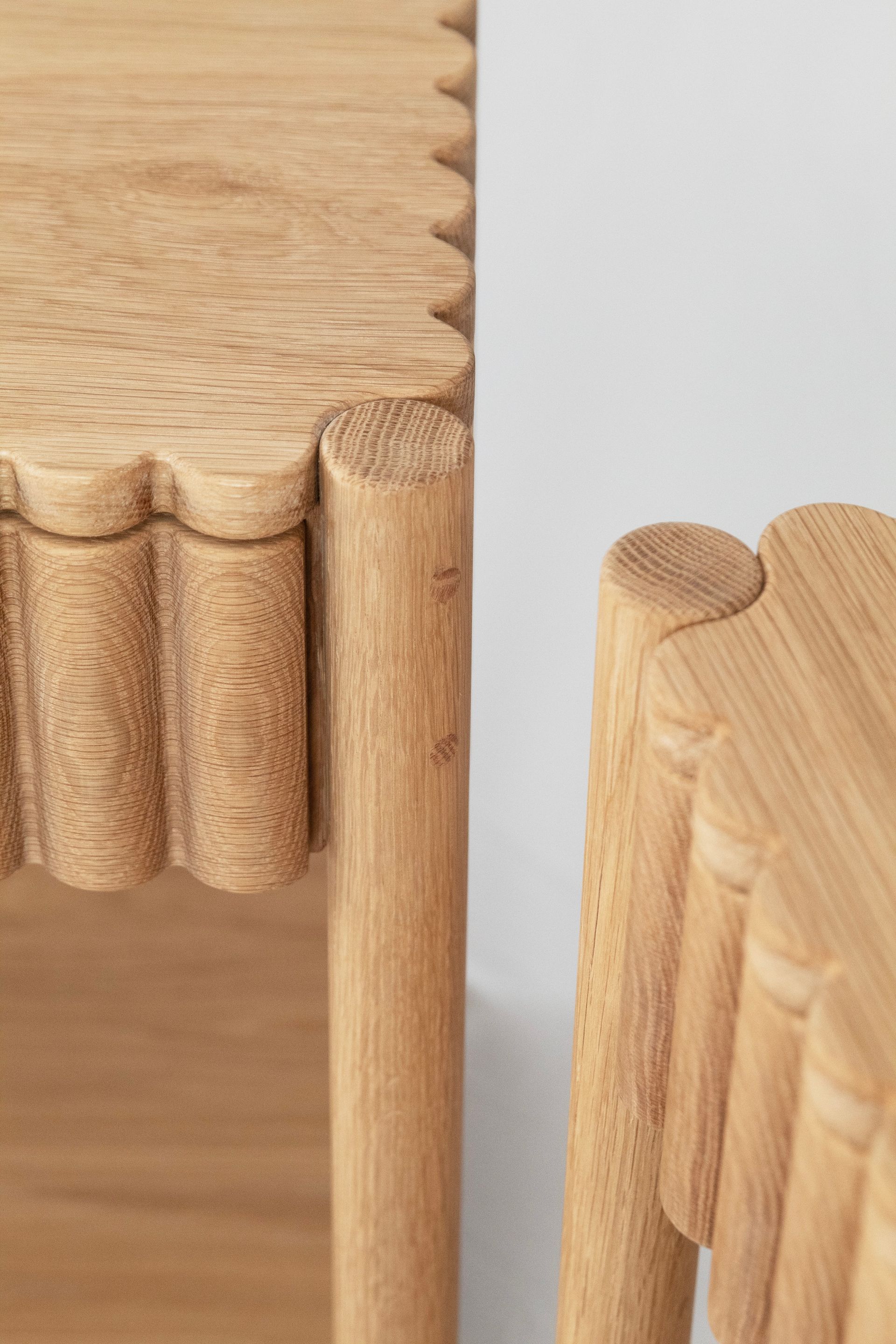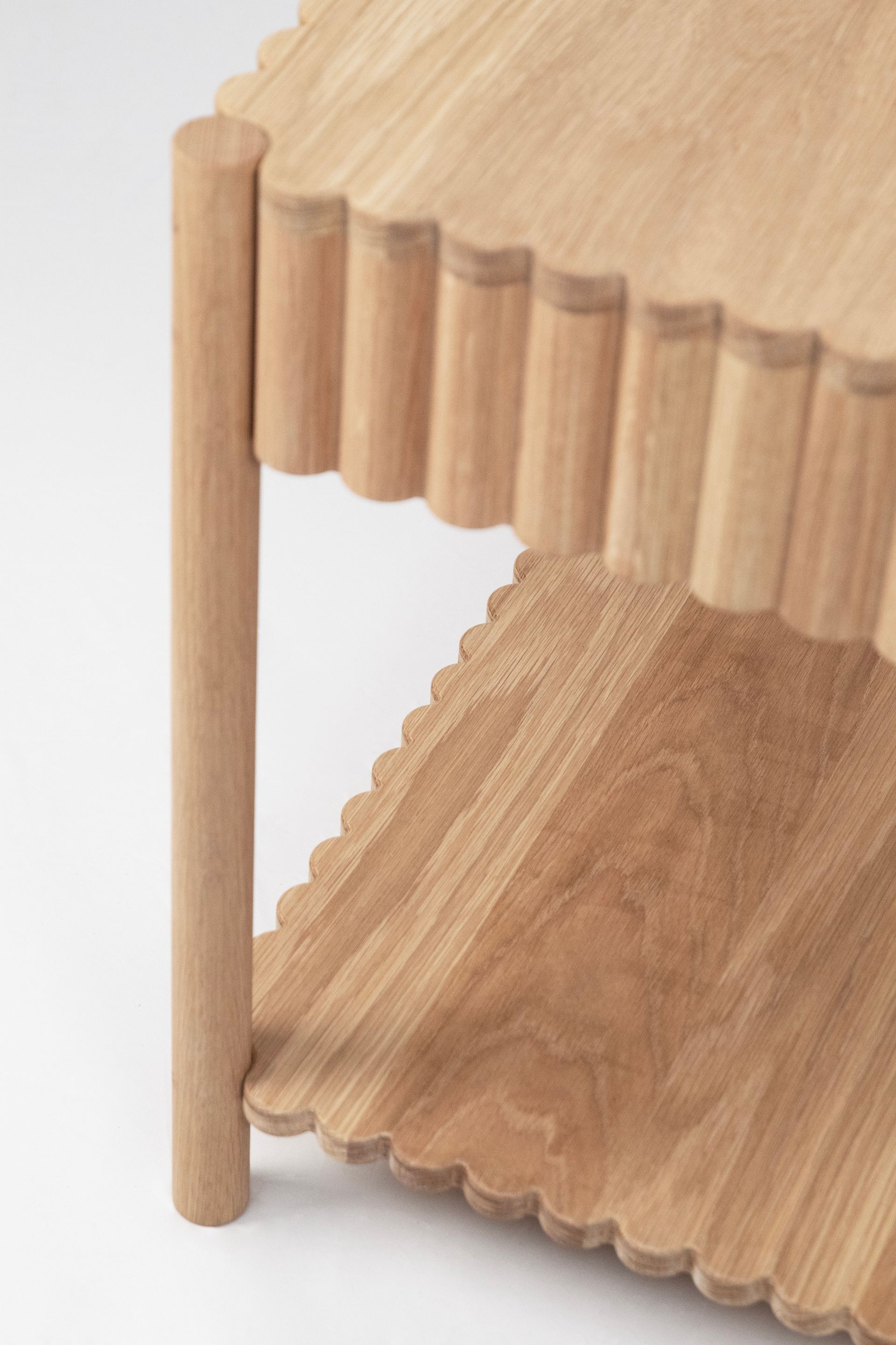 The Saltine Nightstands were commissioned for a client who required a set of bedside tables that have a “light, airy, & leggy” composition. The Design started with long dowel legs. These were the guiding feature for the remainder of the design, whereas the cylinder shape was mimicked with the geometric repetition across the front and sides. Their silhouettes then projected to the surface edges which defined the final form.