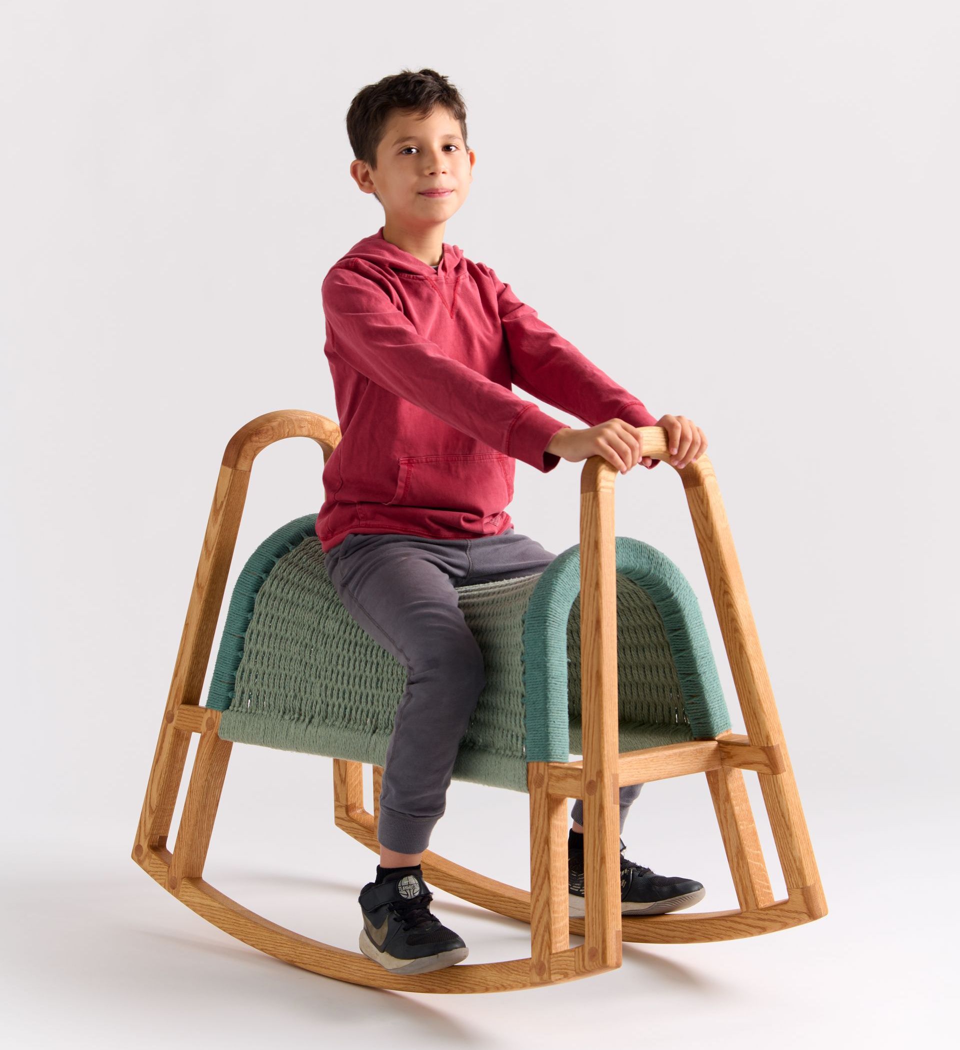 Guided by a fine-craft approach to design, the Sway rocking stool is an honest to function representation of a traditional rocking horse. Constraints were created by breaking the form down into the three necessary parts; reins, rockers, and saddle. Parts are factored by the simple requirements of ergonomics, structure and recreation. These limitations steered the design from a literal “horse,” into a functional and aesthetically pleasing stool while maintaining its playful purpose.