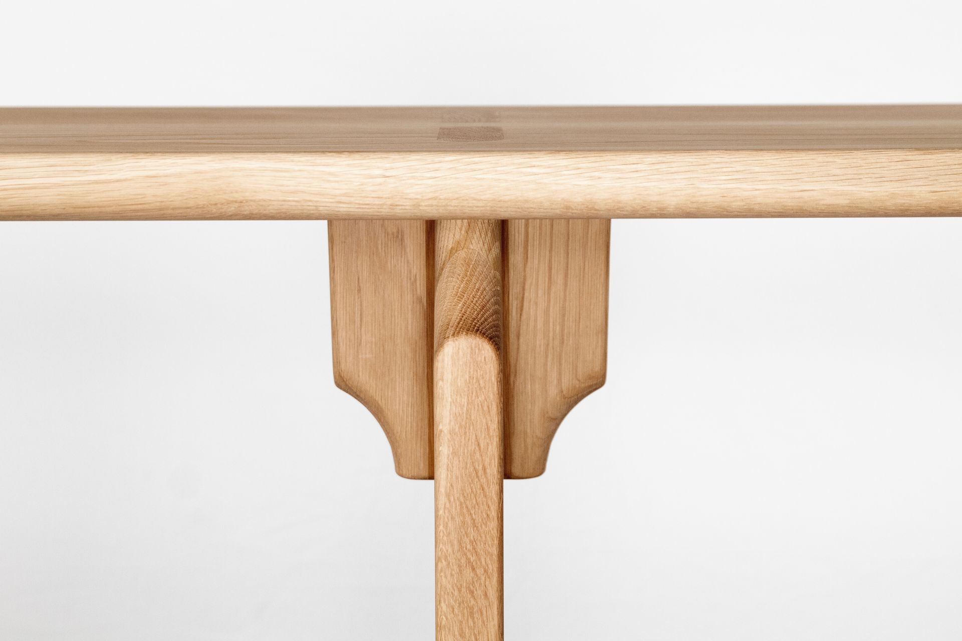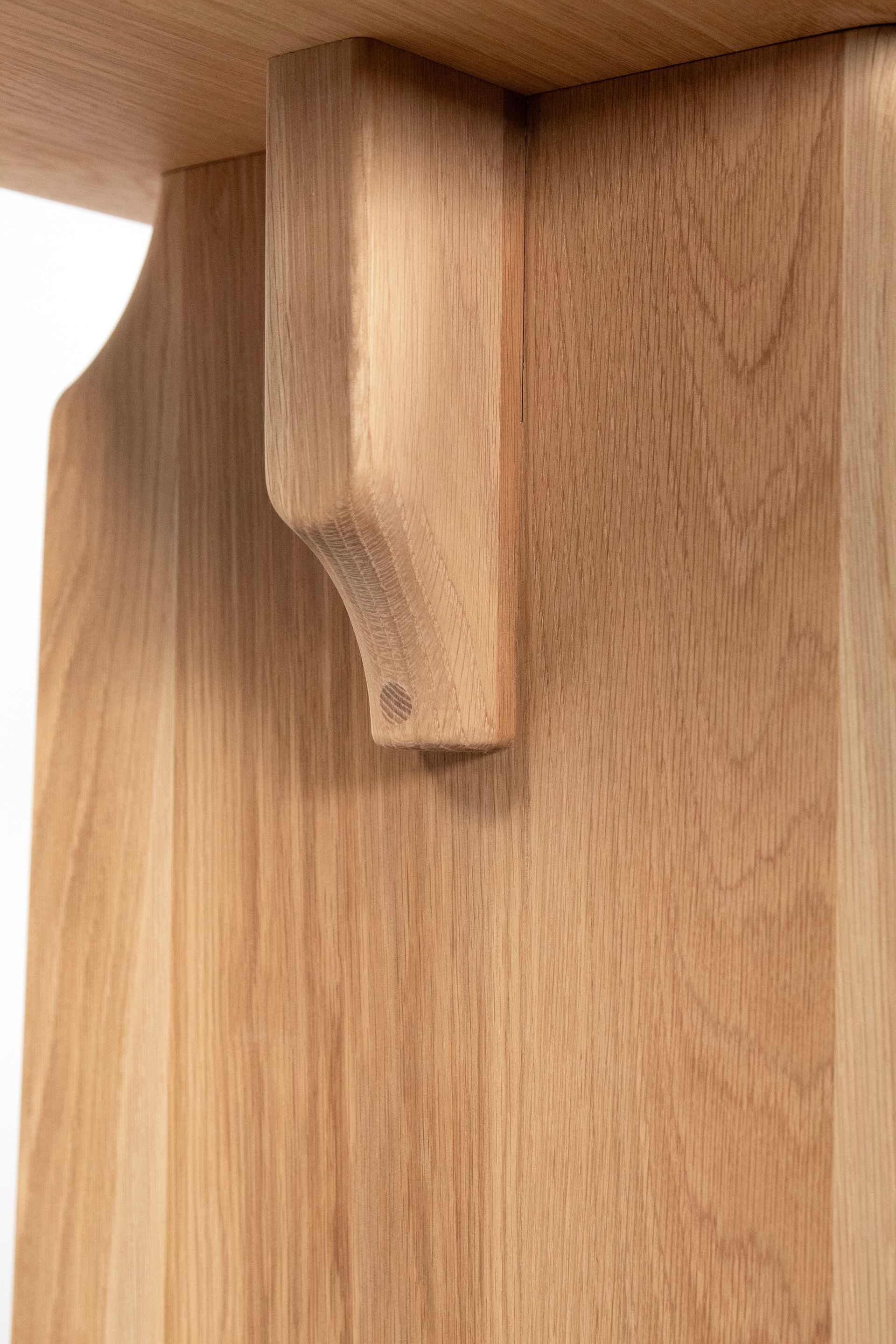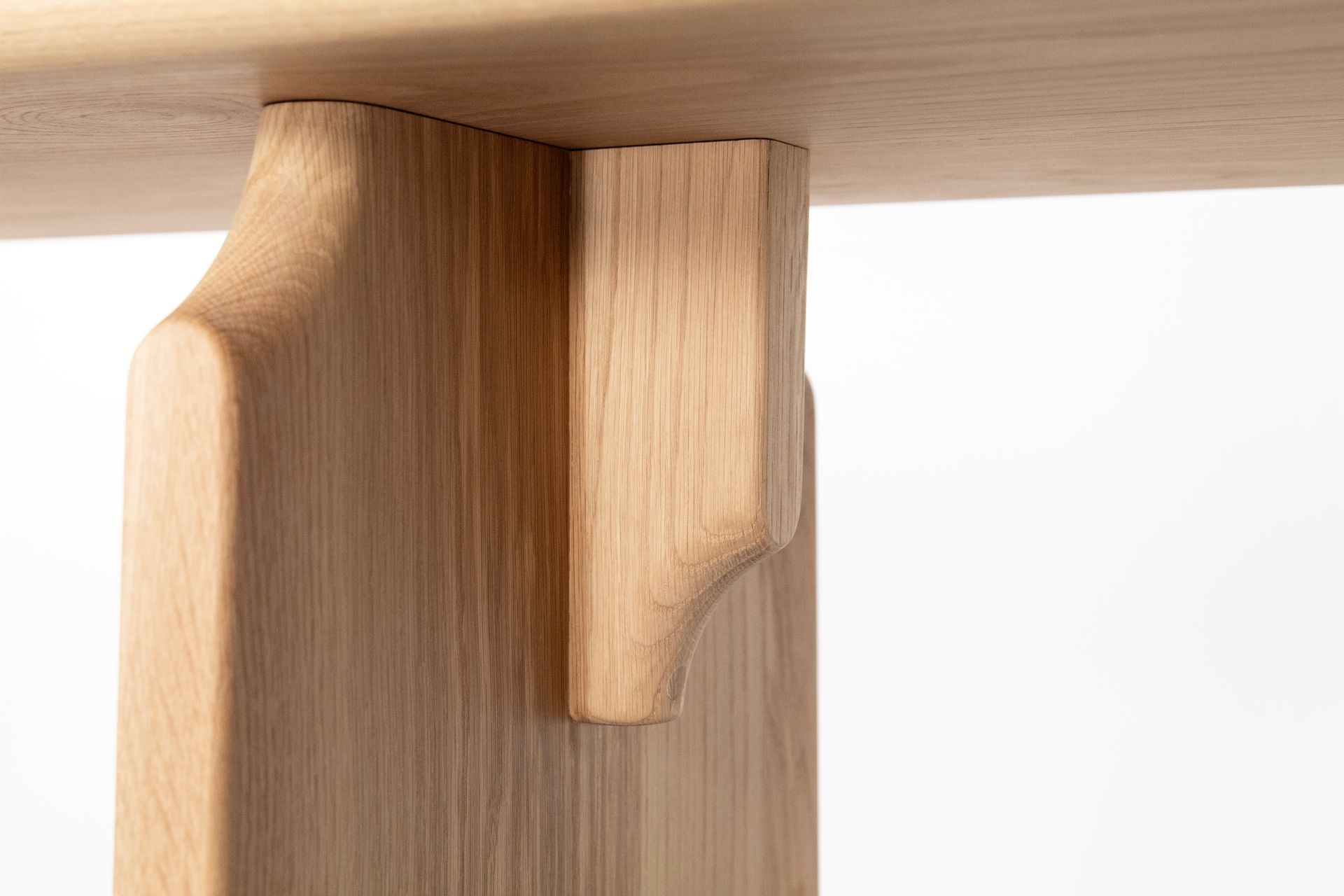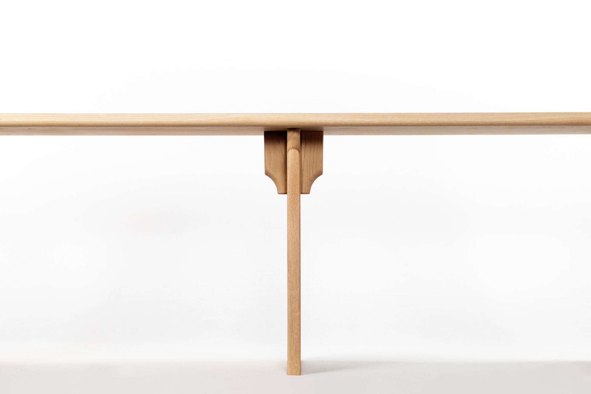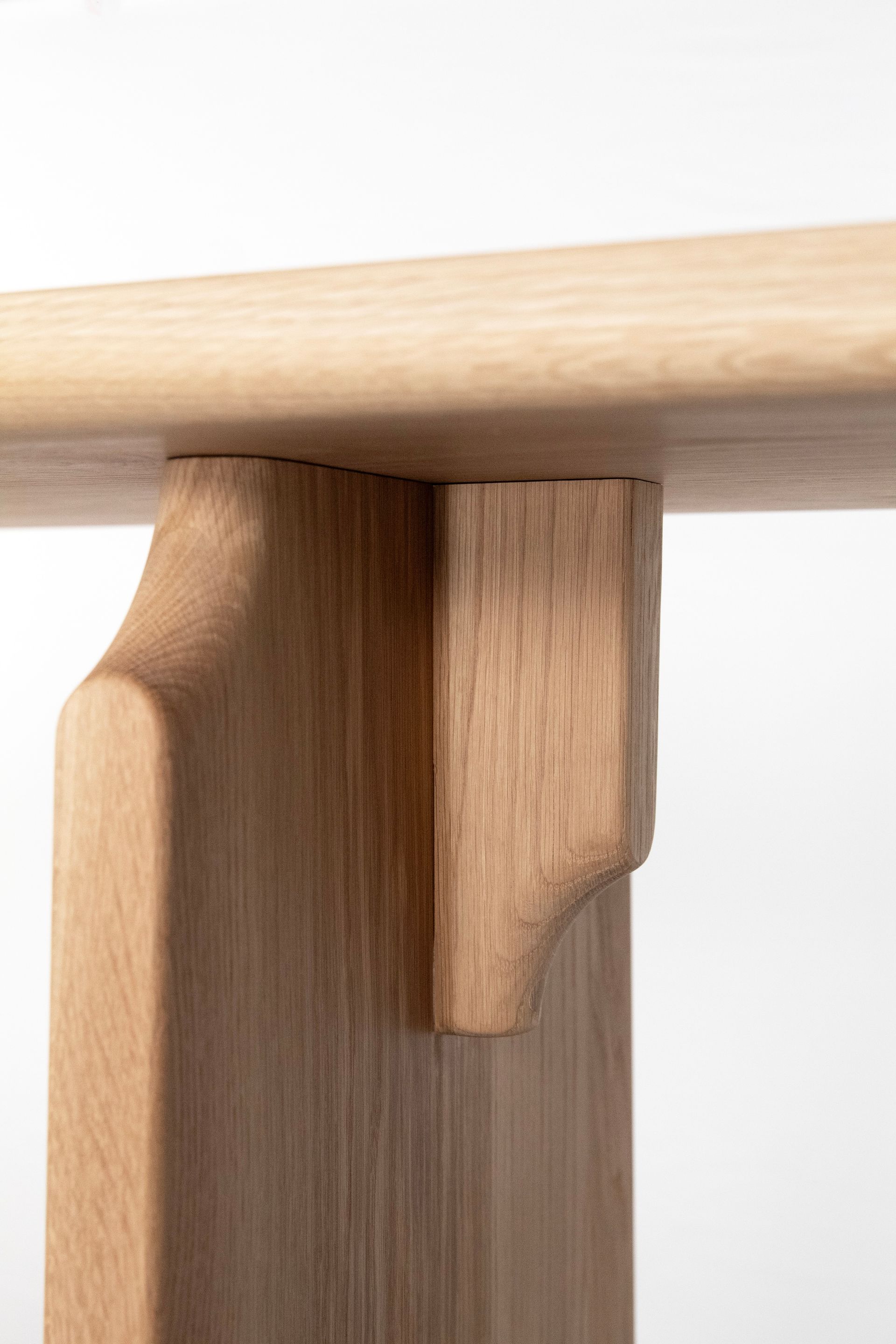 This console table fuses ancient mystery and contemporary design through a Stonehenge-inspired table. This magnificent piece, stretching a massive ten feet in length and supported by pillar-like bases hopes to create awe for its inhabited space. Crafted from solid white oak and coated with a raw-matte plant-based oil, the table aims to replicate the enduring strength of the famous stones. The leg bases are tapered in towards the top and have a soft shoulder before intersecting the bottom of the table surface. Whether sparking conversations about neolithic history or standing as a decorative marvel, this Stonehenge-inspired table invites you to immerse yourself in the enigma of the past while enjoying the functionality of the present.