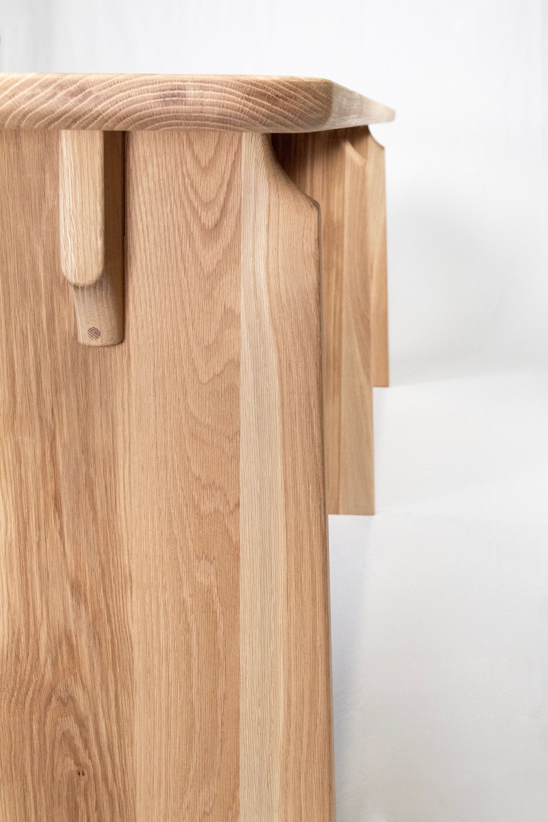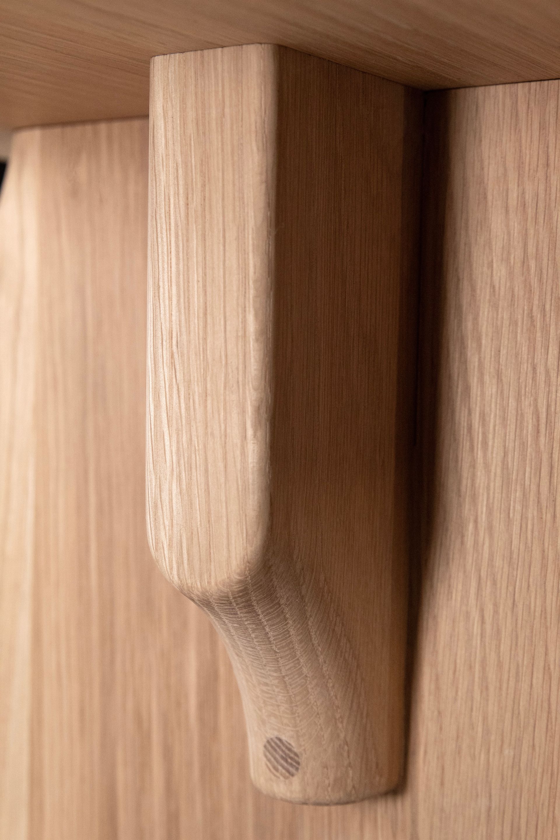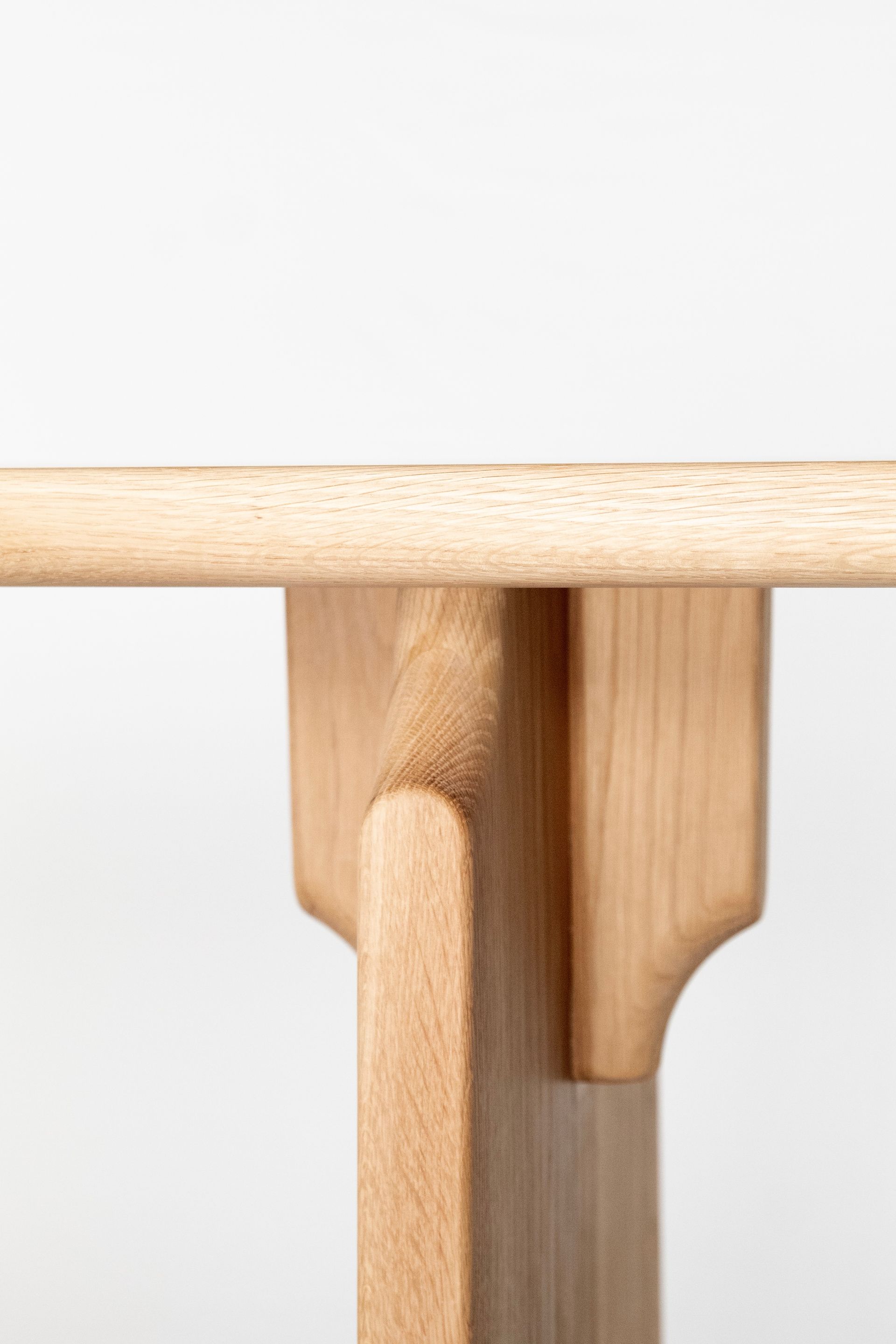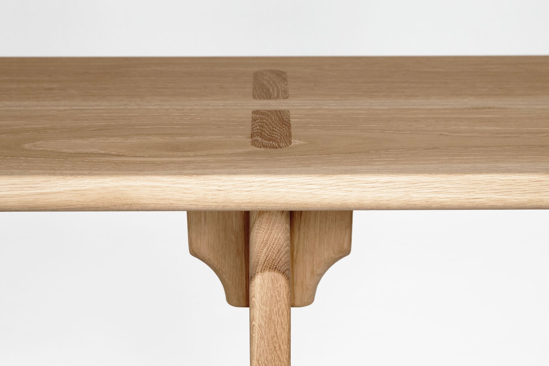 This console table fuses ancient mystery and contemporary design through a Stonehenge-inspired table. This magnificent piece, stretching a massive ten feet in length and supported by pillar-like bases hopes to create awe for its inhabited space. Crafted from solid white oak and coated with a raw-matte plant-based oil, the table aims to replicate the enduring strength of the famous stones. The leg bases are tapered in towards the top and have a soft shoulder before intersecting the bottom of the table surface. Whether sparking conversations about neolithic history or standing as a decorative marvel, this Stonehenge-inspired table invites you to immerse yourself in the enigma of the past while enjoying the functionality of the present.
