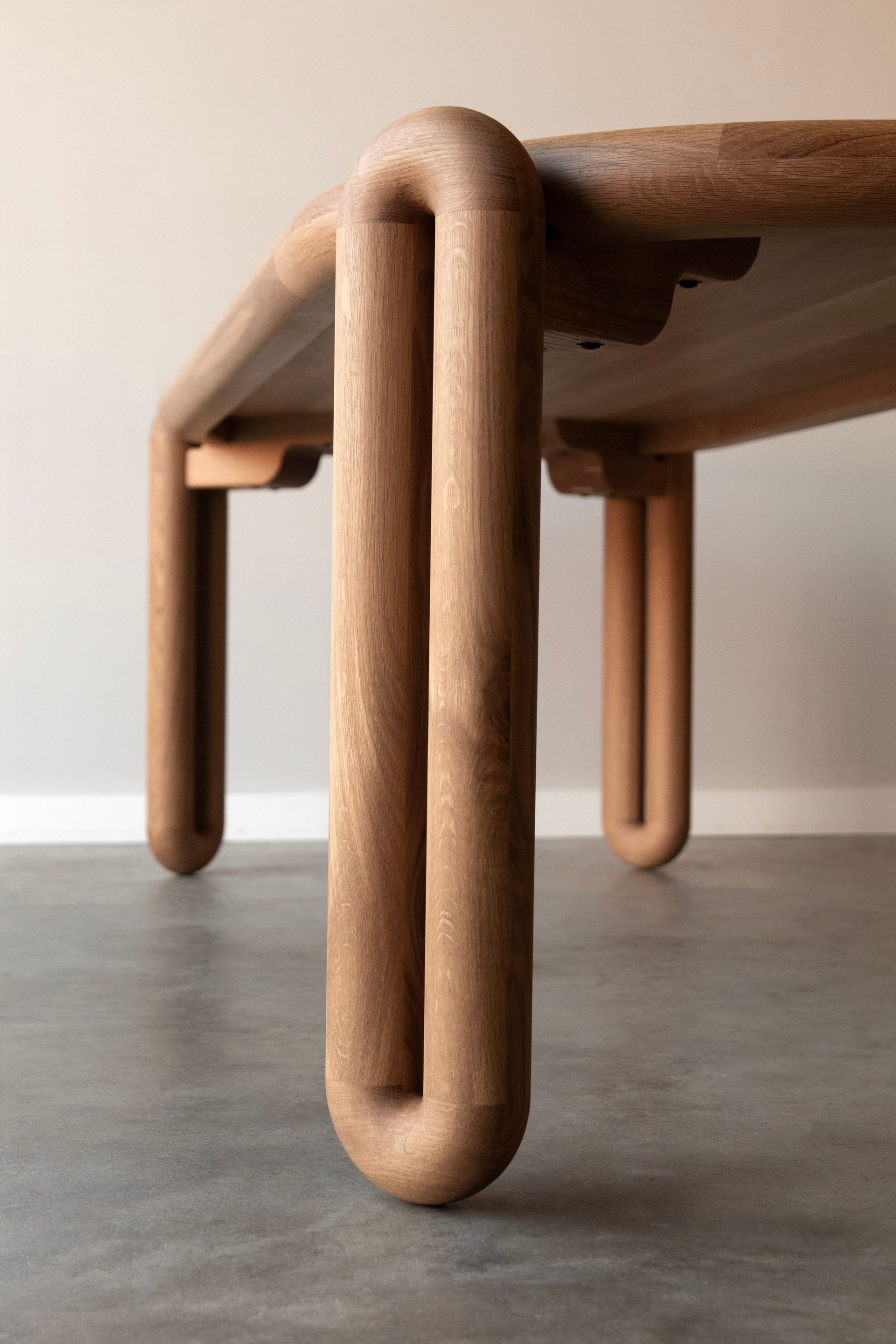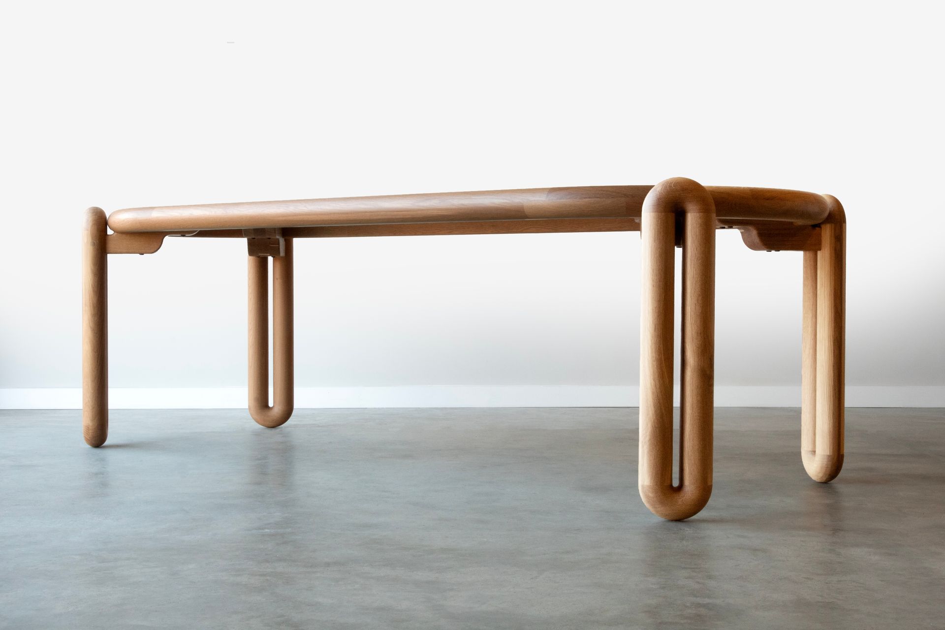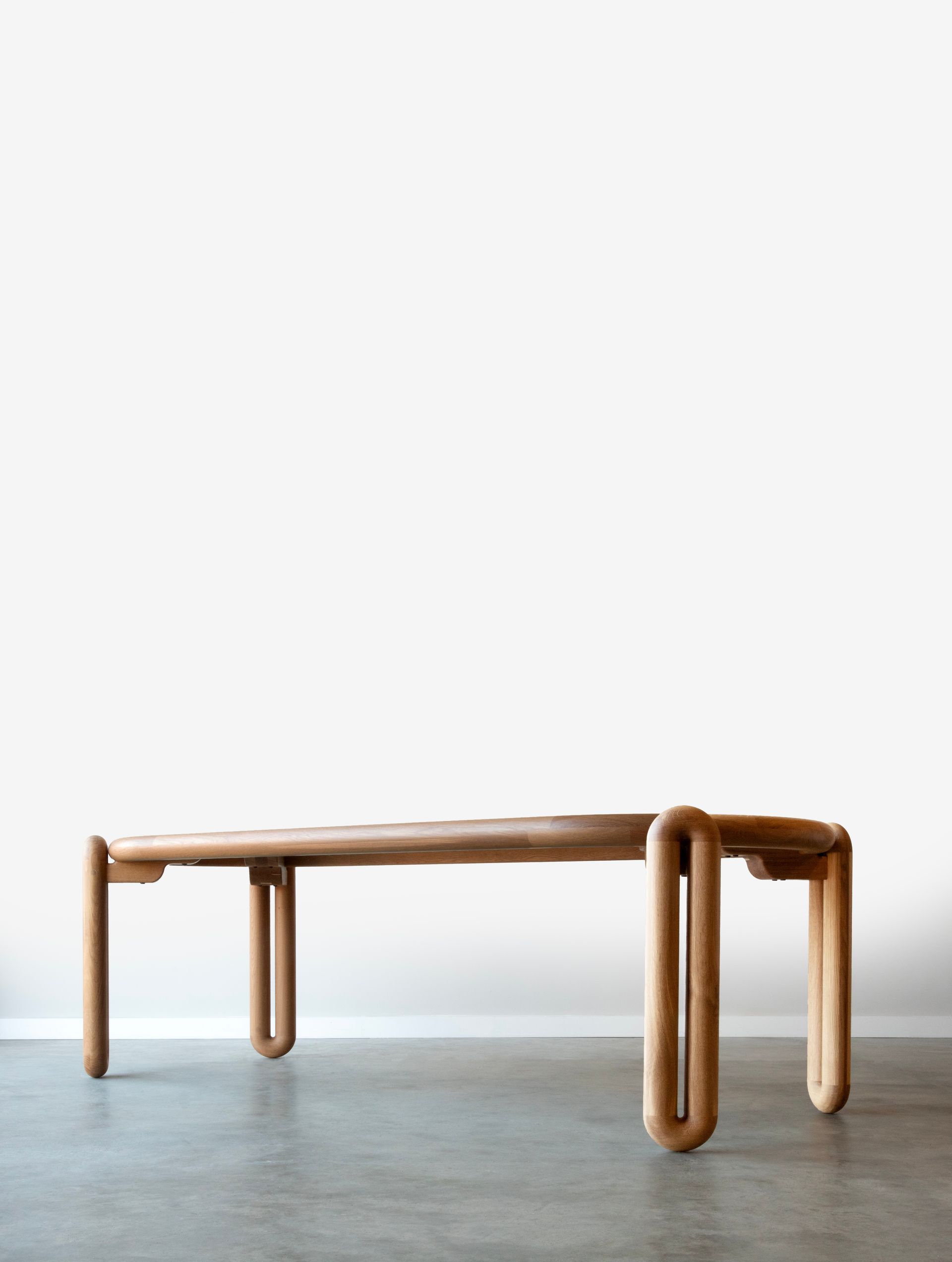 This “Tubular” table went through several variations before landing on its final form. Not a sharp edge on this design exists which makes for a playfully approachable place to gather.
